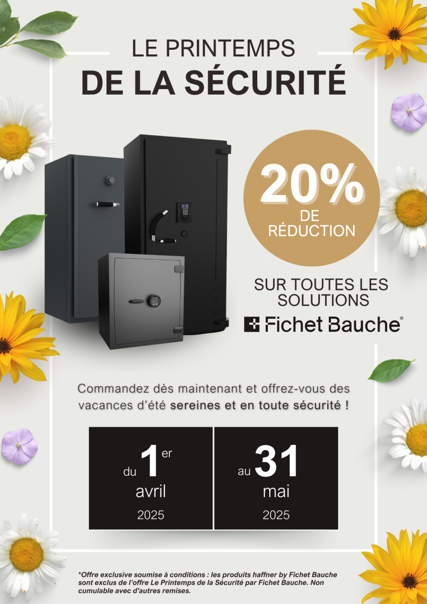 Jusqu'au 31 mai 2025, profitez de 20% de remise sur l'ensemble de la gamme coffre fort FICHET BAUCHE.
